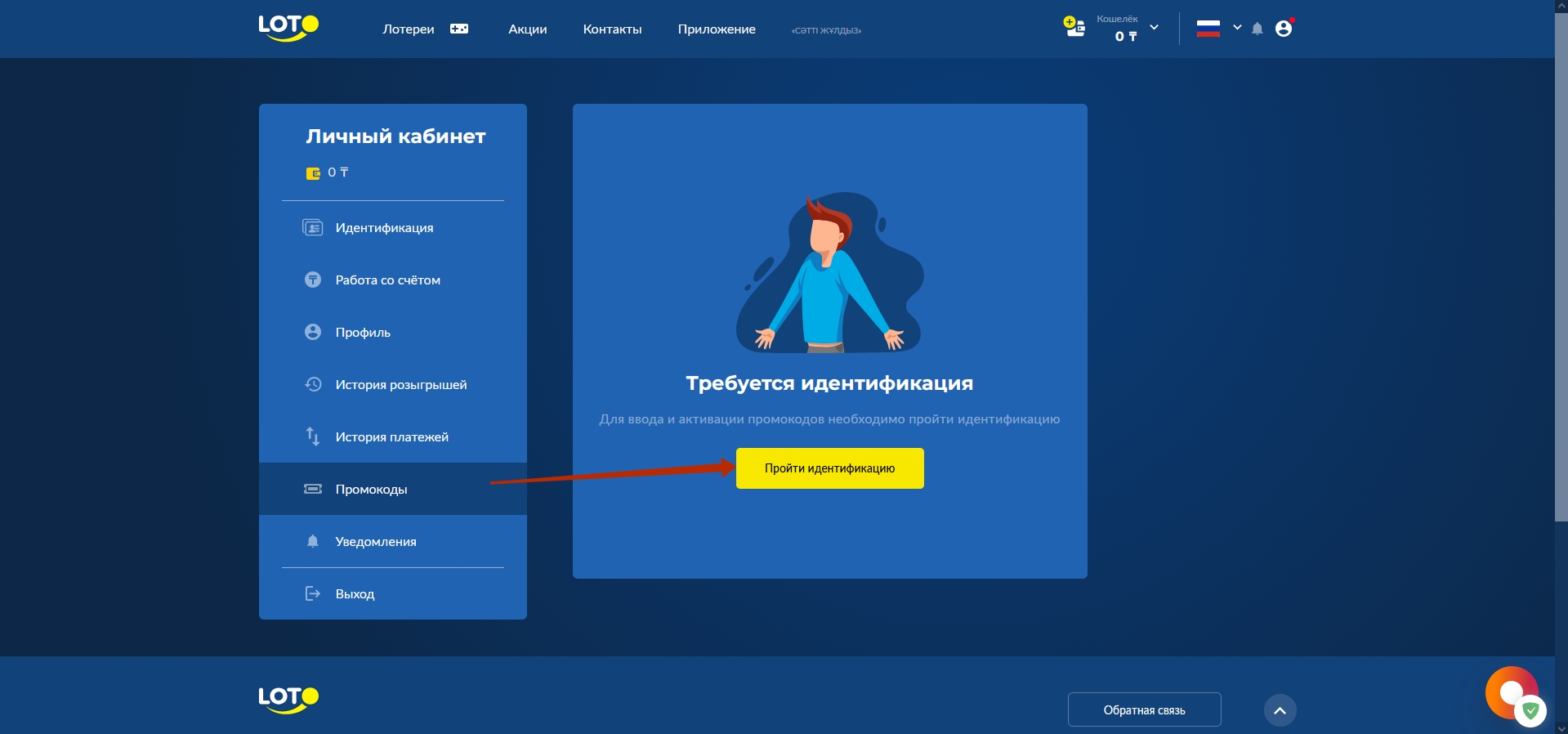 не пройдена идентификация, даже активированный промокод не сработает.