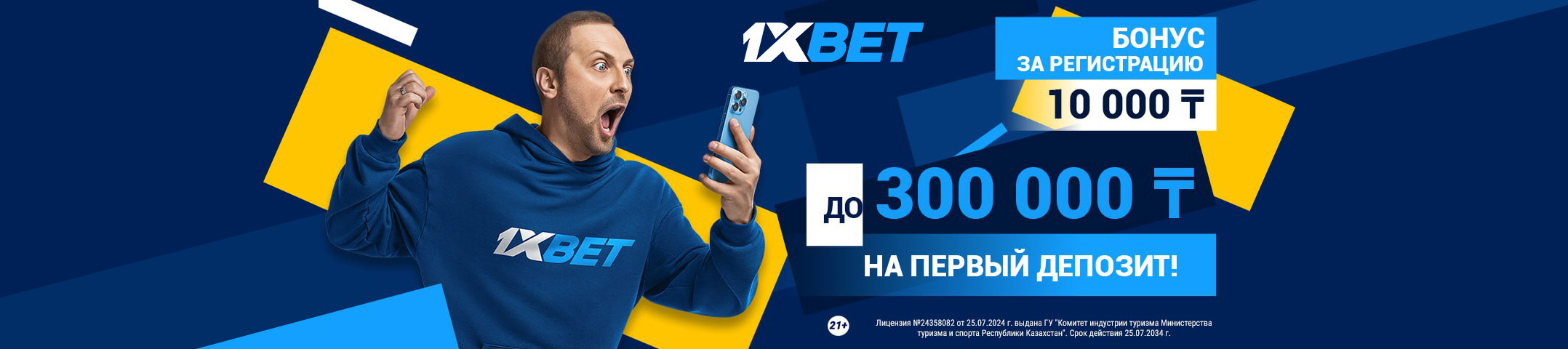 1xBet – букмекер с самой широкой линией. Есть ставки на фолы, ауты и множество других статистических показателей. На сайте постоянно проводятся розыгрыши призов и акции. Коэффициенты высокие – одни из лучших в Казахстане.